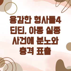 이 프로그램에서 가장 큰 화제를 모은 것은 아동 실종 사건의 충격적인 전말이었습니다. 7세 남아가 실종되어 형사들이 사건을 해결하는 과정이 공개되었는데, 이 과정에서 가수 딘딘이 분노와 충격을 표출했습니다.