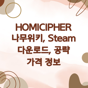 가격: HOMICIPHER의 가격은 약 20,000원 수준입니다. 플랫폼과 할인 정책에 따라 가격이 다를 수 있습니다.