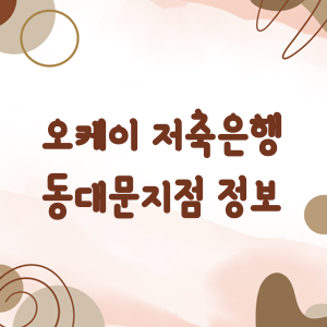 오케이 저축은행 동대문지점 이용 방법