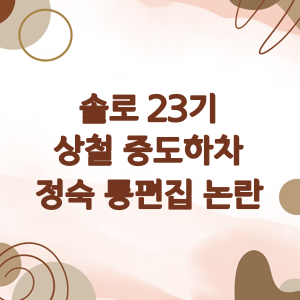 이 소식을 들으면 어떤 생각이 드시나요? 최근 '나는 솔로' 23기 출연자 상철의 갑작스러운 중도하차 소식이 전해지면서, 많은 시청자들이 그 이면에 숨겨진 사연에 대해 궁금해하고 있습니다. 과연 상철의 하차 결정에는 어떤 배경이 있었을까요?