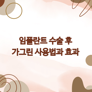 임플란트 수술 후 가글 사용에 대해 어떤 점이 궁금하신가요? 구강 관리에 도움이 되는 다른 팁이 있다면 무엇일까요?