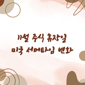 올해 11월에는 미국의 서머타임 시간 변화도 있습니다. 매년 11월 첫째 일요일 새벽 2시에 서머타임이 종료되어 1시로 변경됩니다. 이에 따라 미국 동부 시간대 기준으로 주식시장 거래 시간이 1시간 늦춰집니다. 따라서 투자자들은 이 시간 변화에 유의해야 합니다.