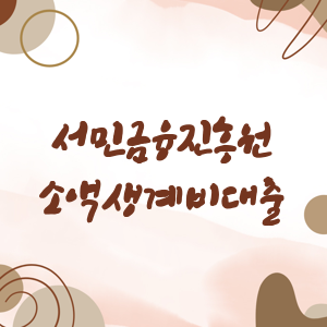 서민금융진흥원 소액생계비대출은 긴급한 생계비가 필요한 서민을 대상으로 지원하는 대출 상품입니다. 최대 100만원까지 대출이 가능하며, 신용도가 낮거나 소득이 낮은 취약계층도 신청할 수 있습니다. 이를 통해 불법 사금융에 노출되기 쉬운 고객의 재기를 돕고자 운영되고 있습니다.
