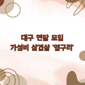 대구에서 연말 모임을 준비한다면 '옆구리'를 주목해 보세요. 이 삼겹살집은 가성비가 뛰어나 많은 이들의 사랑을 받고 있습니다.