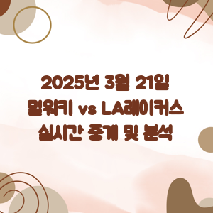 NBA 팬 오늘 우리가 기다려온 경기가 드디어 다가왔습니다. 2025년 3월 21일, 밀워키 벅스와 LA 레이커스의 대결이 펼쳐질 것입니다. 과연 이 경기의 결과는 어떻게 될까요? 양 팀의 전력과 최근 경기 흐름을 살펴보면 흥미로운 예측이 가능할 것 같습니다.