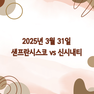 야구 팬 오늘 우리는 2025년 3월 31일에 펼쳐질 샌프란시스코 자이언츠와 신시내티 레즈의 메이저리그 경기를 실시간으로 분석해 보겠습니다. 이 경기는 어떤 흥미로운 전개와 결과를 보여줄까요?