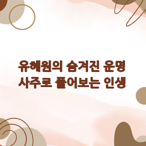 사주학은 개인의 성격, 운명, 인생의 흐름을 예측할 수 있는 고대 동양의 지혜입니다. 이를 통해 우리는 유혜원의 삶에 숨겨진 의미와 교훈을 발견할 수 있을 것입니다. 그녀의 인생 이야기를 따라가며, 우리 자신의 삶에 대한 통찰도 얻을 수 있을 것입니다.